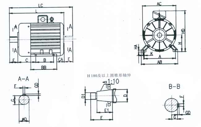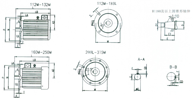 一、YZ112-250 IM1安裝尺寸與外形尺寸